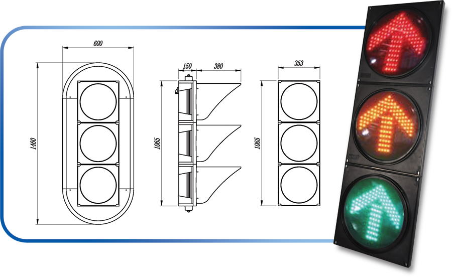 鼎光 FX300-3-DA LED方向指示信號(hào)燈采用LED發(fā)光方式,符合國(guó)標(biāo)《道路交通信號(hào)燈》(GB14887-2011)的要求,并且 通過(guò)了公安部交通安全產(chǎn)品質(zhì)量監(jiān)督檢測(cè)中心的檢測(cè)。交叉口信號(hào)燈按車(chē)道功能設(shè)置,每組信號(hào)燈為具有可顯示紅、黃、綠三 色箭頭燈和全屏燈功能的燈具,安裝附于車(chē)道下游的懸臂桿或立柱式燈桿上,燈桿基礎(chǔ)必須安裝地線(xiàn),接地電阻小于或等于10 歐姆。