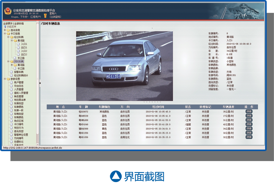 DA-931后平臺數(shù)據(jù)管理系統(tǒng)采用B/S結(jié)構(gòu),通過WEB方式登陸訪問,采用一般瀏覽器作為客戶端,無需進行客戶端維護,支持通過網(wǎng)絡(luò)進行遠程訪問。系統(tǒng)以性能穩(wěn)定、人性化為設(shè)計原則,系統(tǒng)人機界面和諧,操作簡單快捷,大大提高對數(shù)據(jù)的處理效率。作為開放、統(tǒng)一的的用戶平臺,DA-931后平臺數(shù)據(jù)管理系統(tǒng)支持公路車輛智能監(jiān)測記錄系統(tǒng)(卡口系統(tǒng))、闖紅燈自動記錄系統(tǒng)、區(qū)間測速系統(tǒng)等系統(tǒng)。公路車輛智能監(jiān)測記錄系統(tǒng)(卡口系統(tǒng))過往車輛數(shù)據(jù)管理模塊對每個卡口點傳回的車輛信息數(shù)據(jù)進行統(tǒng)一存儲,并提供過往車輛信息的查詢調(diào)看、車流量統(tǒng)計、嫌疑車輛的布控等服務(wù)。闖紅燈自動記錄系統(tǒng)違法車輛數(shù)據(jù)管理模塊負責(zé)對每個前段路口傳回的違法照片進行分類入庫,并通過人工 篩選有效違法證據(jù)照片進行處理打印罰單。系統(tǒng)也提供違法數(shù)據(jù)的查詢和違法流量的統(tǒng)計。區(qū)間測速系統(tǒng)過往車輛及違法車輛數(shù)據(jù)管理模塊除了對前端測速點過往車輛信息的記錄,還提供對超速數(shù)據(jù)的自動分離和存儲,通過人工確認有效違法數(shù)據(jù)進行處理打印罰單。系統(tǒng)也提供違法數(shù)據(jù)的查詢和違法流量的統(tǒng)計。